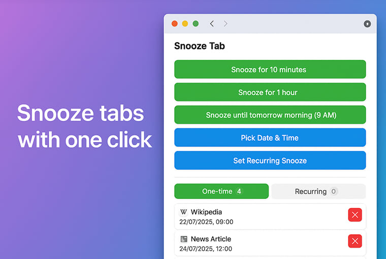 This will snooze the tab for the selected period of time. Once the snooze period ends, the tab will open back up. You’ll be notified the moment the snoozed tab opens.